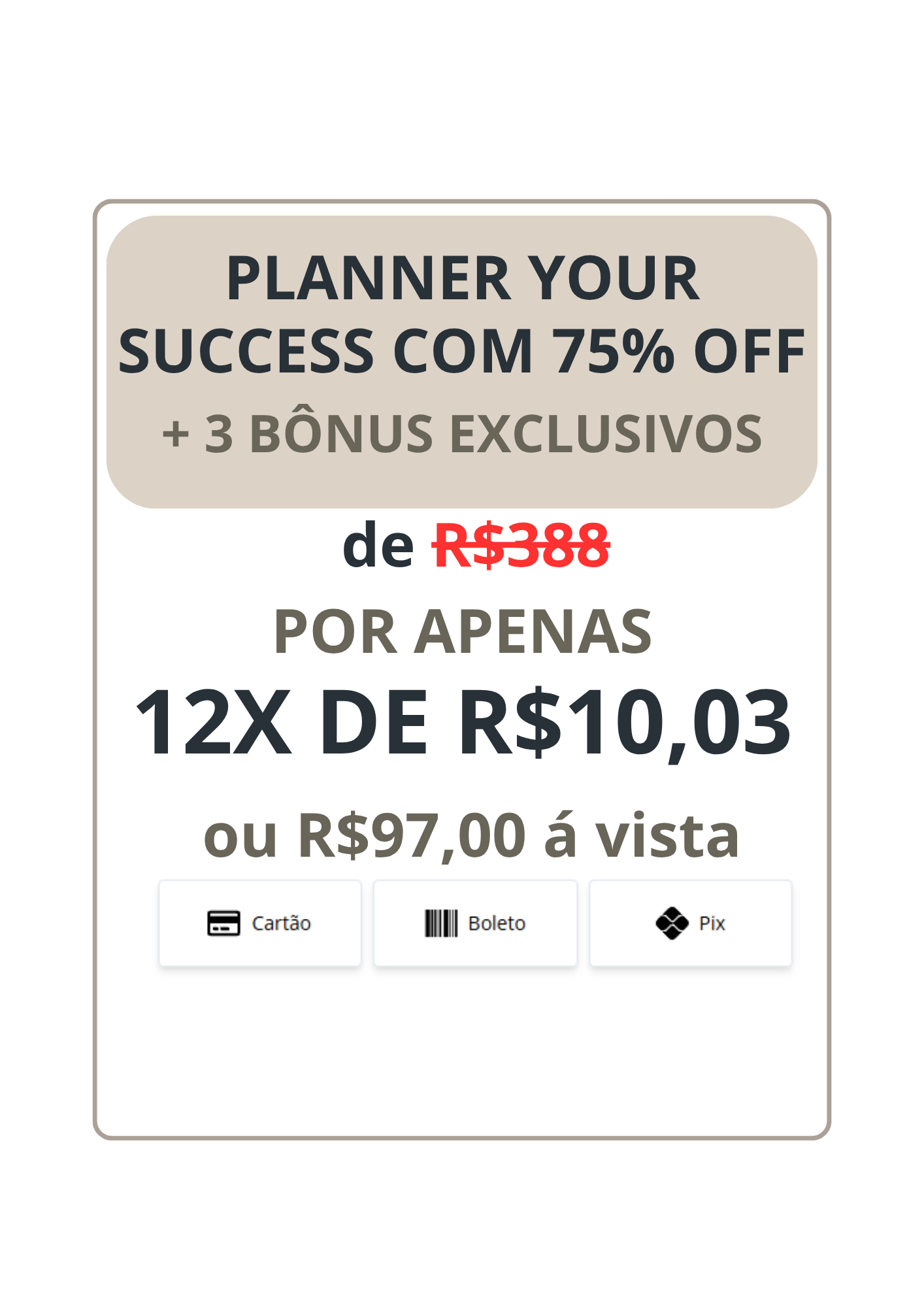 E é por isso que criei o Planner Your Success, para ajudá-lo(a) a construir sua própria jornada de sucesso, com equilíbrio em todas as áreas da vida.
